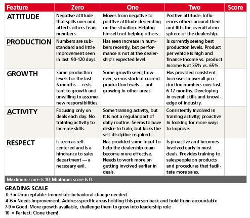 “A” for Activity: F&I managers touting healthy production levels set aside time each day to practice their skills and research their craft. If you want to grow as a professional, you have to change something you do every day. Committing yourself to daily training activities will provide you with fresh information and keep your skills sharp. That means reading articles to gain new perspectives on the F&I process, roleplaying your presentation, uncovering tangible proof of the current cost of frequent repairs, wheel and tire replacements and more. Bottom line, F&I managers who are growing their skills have intentional training activity on their daily calendar.