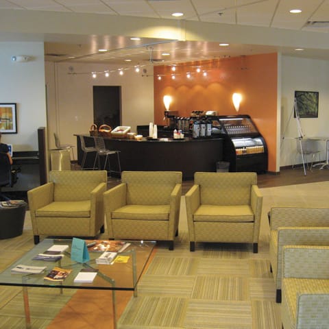 Customers can get complimentary drinks and snacks at the RBM North's café and lounge area.
