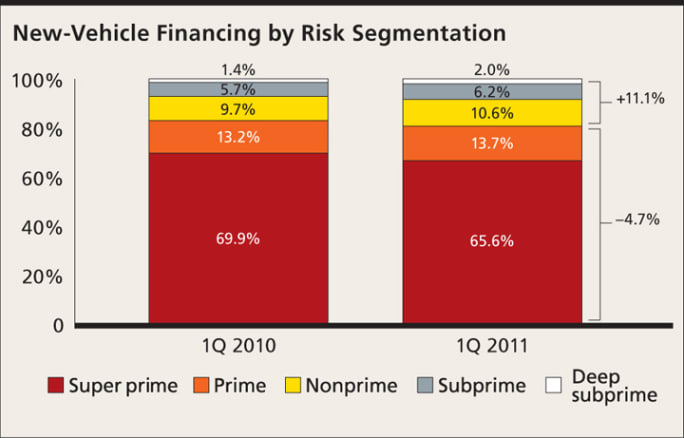 As the auto finance landscape continued to stabilize in the first quarter of 2011, lending sources continued to show a higher tolerance for risk. So what looked like a light at the end of tunnel in previous quarters now appears to be an expanding bright spot for the auto finance marketplace.