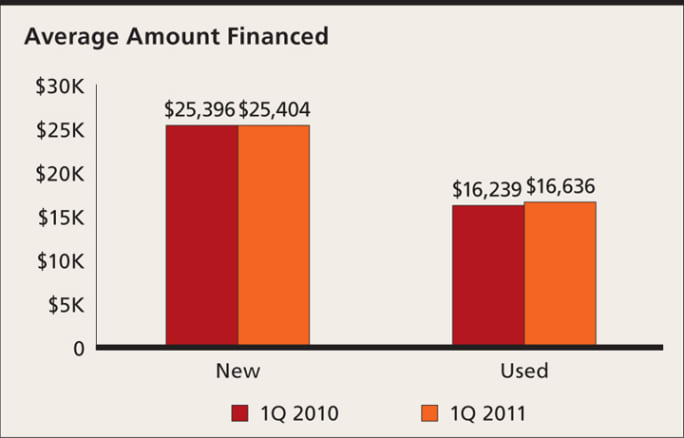 There was little change in loan characteristics, with monthly payment, loan length and amount financed staying relatively stable. The average loan amount for a new vehicle increased by a mere $8 to $25,404 in the first quarter, while the average used-vehicle loan increased by $397 to $16,636 in the first quarter of this year.