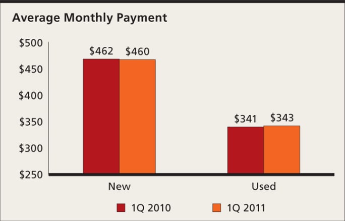 The improving ease of obtaining a new-vehicle loan also was reflected in average credit scores. For new-vehicle financing, the average credit score fell to 766, 10 points lower than in the first quarter of 2010. Coincidentally, 766 also was the average score in the fourth quarter of 2008, after which the market began to contract in earnest.[PAGEBREAK]