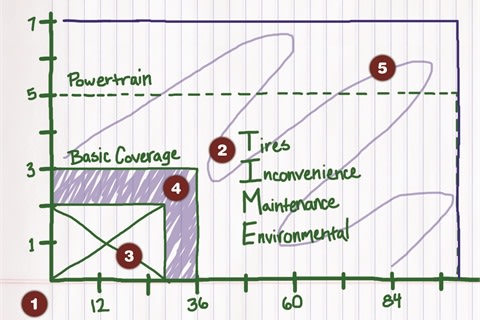 1. Draw out the graph in front of the customer (I used a green marker) to illustrate the factory warranty coverage.