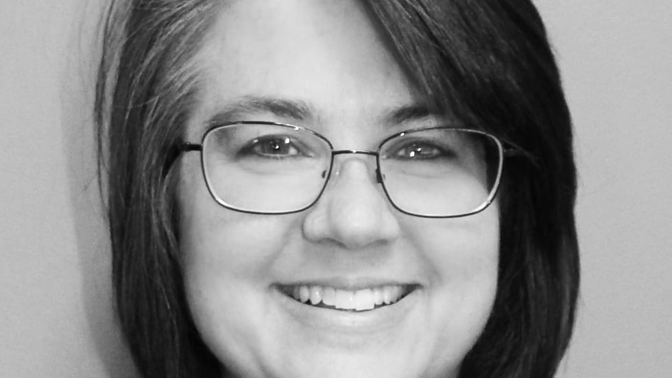 Woman in casual clothing sitting at a desk