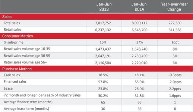 Leasing is also a popular option for consumers, now accounting for 26% of retail sales, compared with 23.8% for the first half of 2013.