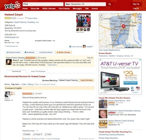 Joe Hadeed, the owner of Hadeed Carpet Cleaning, said Yelp users who were not real customers of his business disparaged the company on Yelp and asked for their names.
