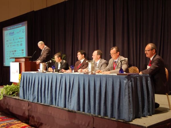Building Value in Today's F&I Presentations panel session (left to right): (moderator) Rick McCormick, Reahard and Associates; Patrick DeMarco, Ristken Software Services; Jim Maxim Jr., MaximTrak Technologies; Ron Martin, The Vision of F&I, "Mad" Marv Eleazer, <i>F&I</i> columnist.