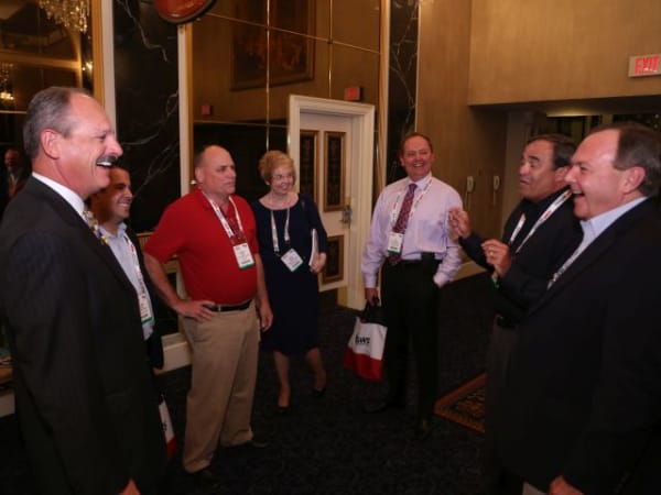 F&I and Showroom columnist Marv Eleazer (far left) chats with conference attendees, including F&Idol finalist Dina Wilson (center).
