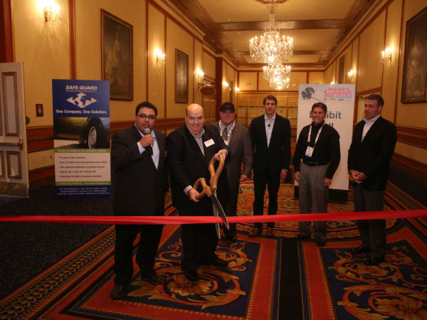 F&I and Showroom's Editorial Director Gregory Arroyo and Publisher David Gesualdo cut the ribbon to signal the opening of the show's exhibit hall.