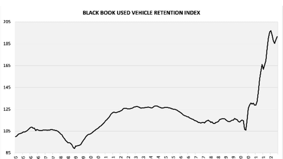 Index reverses a 3-month slide and increases to 188.8 points in May 2022 as tight new inventory and record low incentives push used wholesale prices up across most segments.