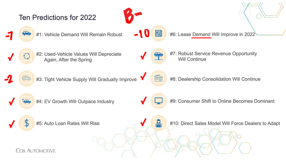 Cox Automotive's quarterly review allows us to see how the market has progressed compared to expectations.