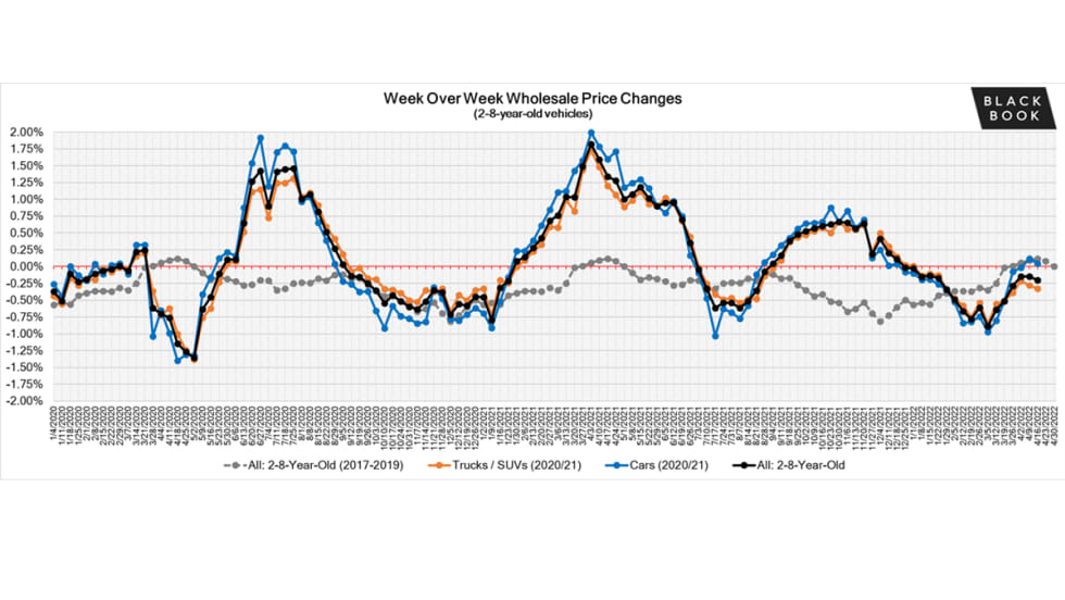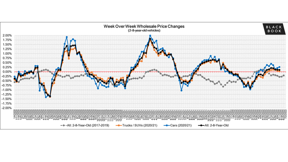 Higher gas prices are affecting the demand for trucks and SUVs – almost all the non-luxury crossover / SUV and pickup segments of all ages are depreciating at an accelerating rate, while non-luxury car segments are appreciating.