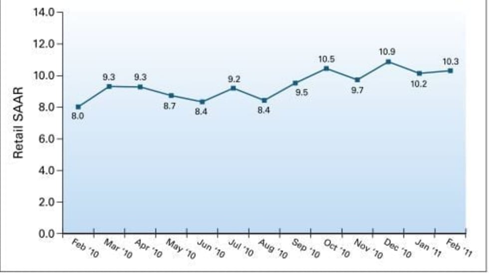 February new-vehicle retail sales are expected to remain strong, despite being a historically slow time of year for vehicle sales, according to J.D. Power and Associates.