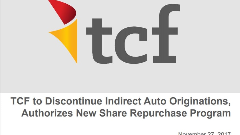 Read More →TCF Financial Corporation announced that its wholly-owned subsidiary, TCF National Bank, has signed a definitive agreement to acquire Gateway One Lending & Finance LLC.