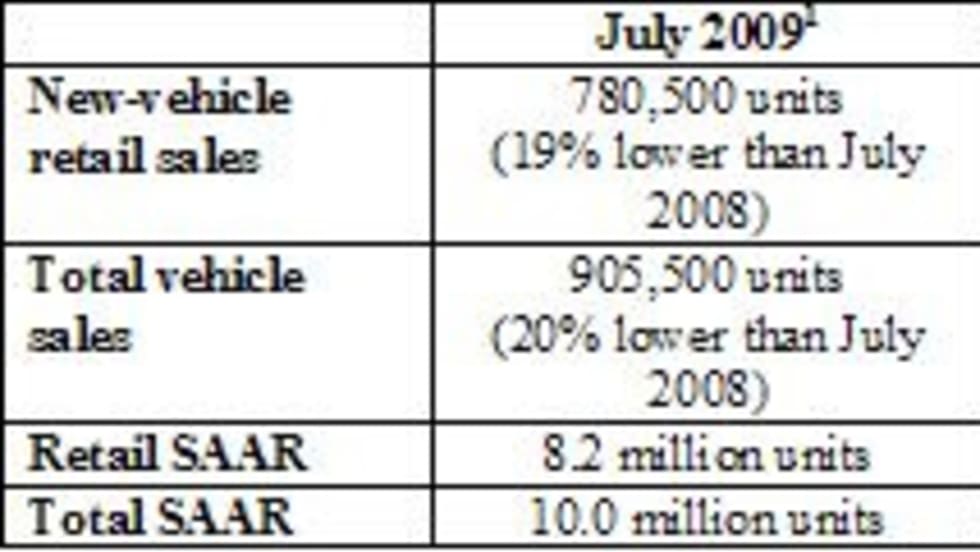 Although new-vehicle retail sales in July are projected to decrease 19 percent from July 2008, this marks an improvement in year-over-year declines observed for the first half of 2009, according to J.D. Power and Associates.
